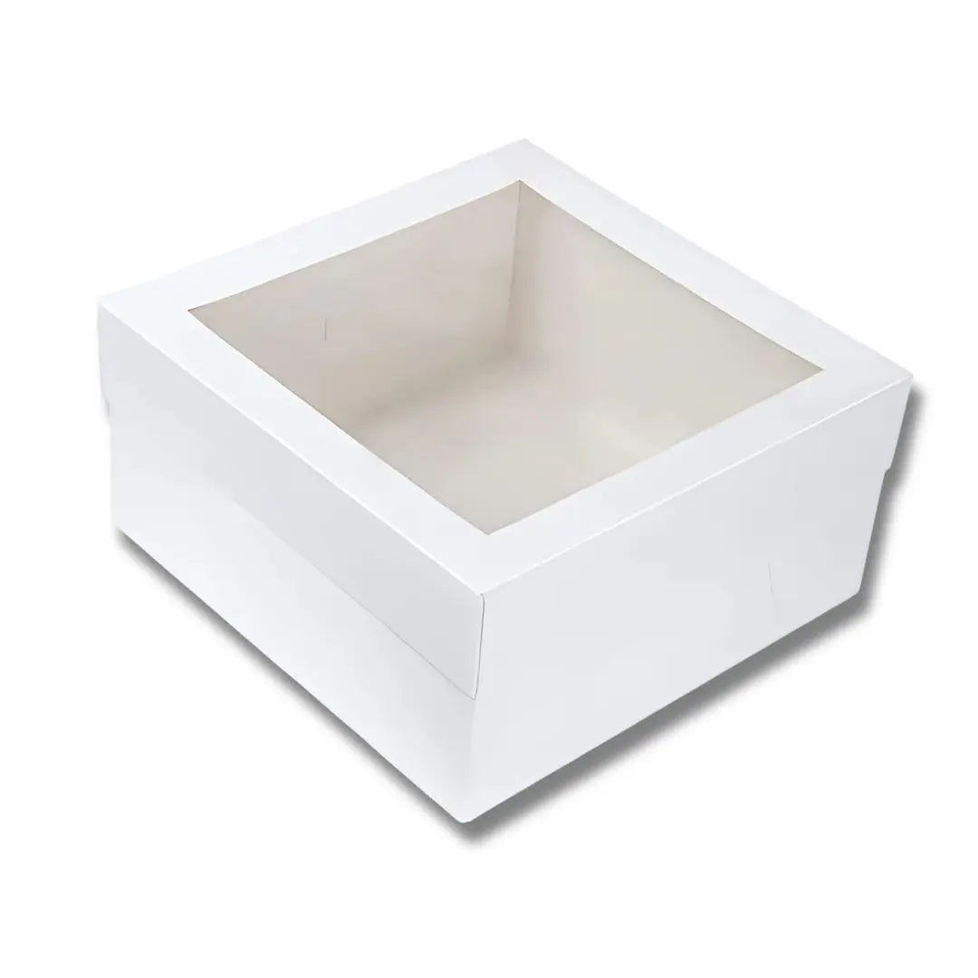 This white cake transport box is crafted from thick, luxury-grade cardboard that is approved for food use. It ensures the safe and stylish transportation of your cakes, providing both durability and elegance.