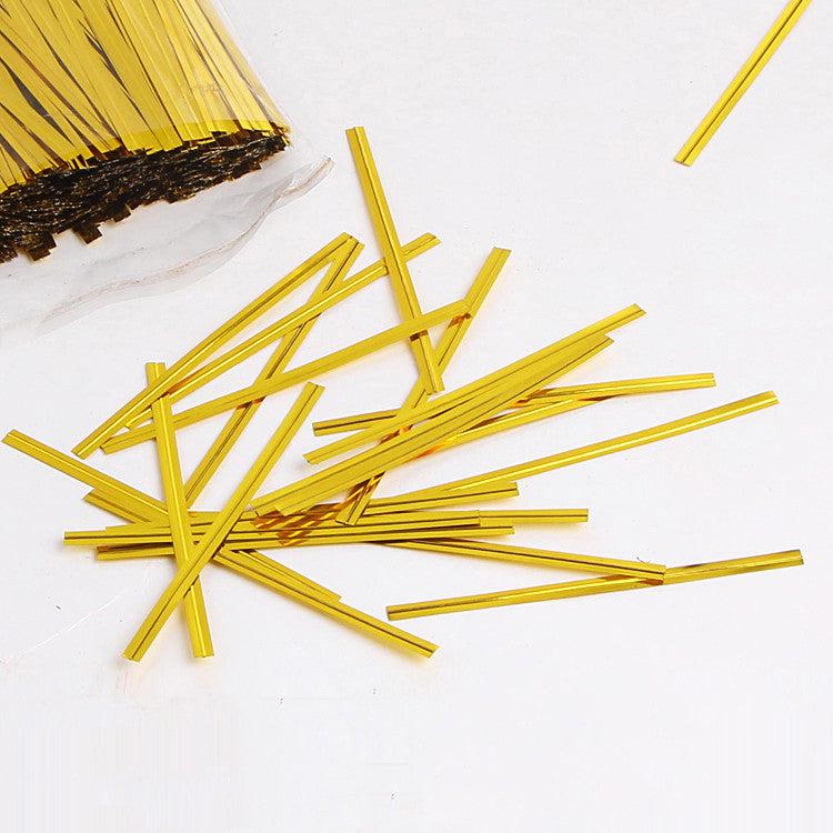 Whether you're preparing for a party, a bake sale, or simply organizing your kitchen, these metallic gold twist ties add a stylish finish to your packaging. Their shiny gold color enhances the presentation of your baked goods, making them ideal for any occasion.